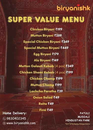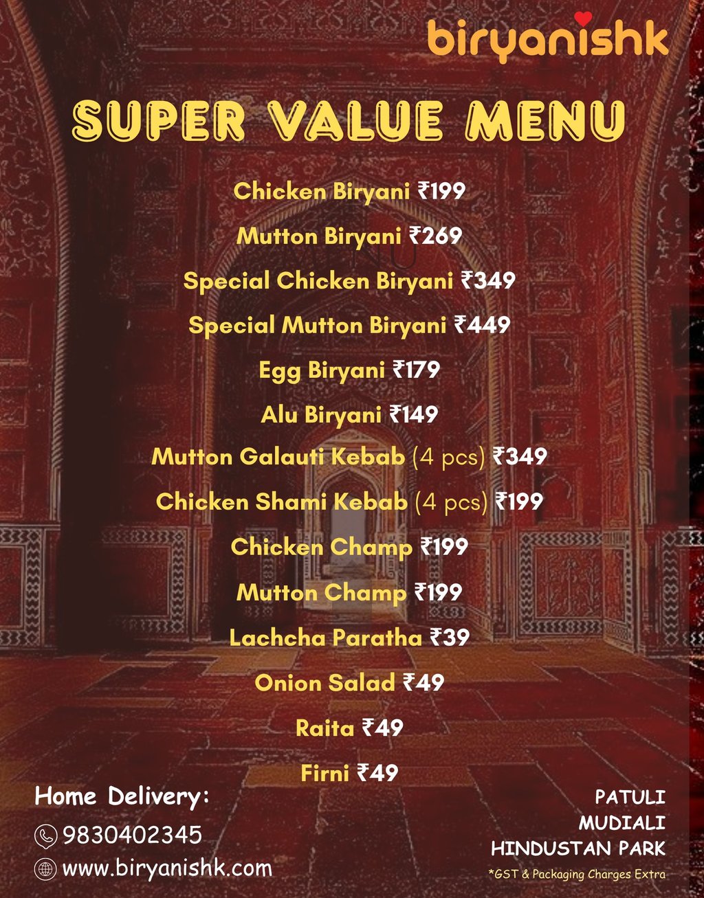 For Home Delivery Call 9830402345 or Order Online at www.biryanishkonline.com